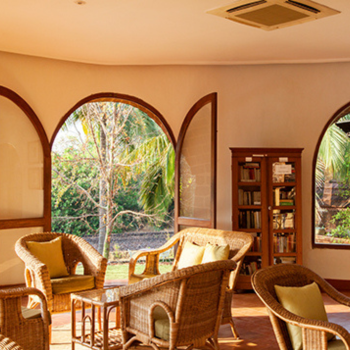 A serene place just 3.5 hours away from Goa airport. Located on the fabled Om beach on the west coast of India in Karnataka and set amidst 26 acres of green lawns and gardens surrounded by pristine beaches, Swaswara is truly an abode of peace far removed from the distractions of urban centers.